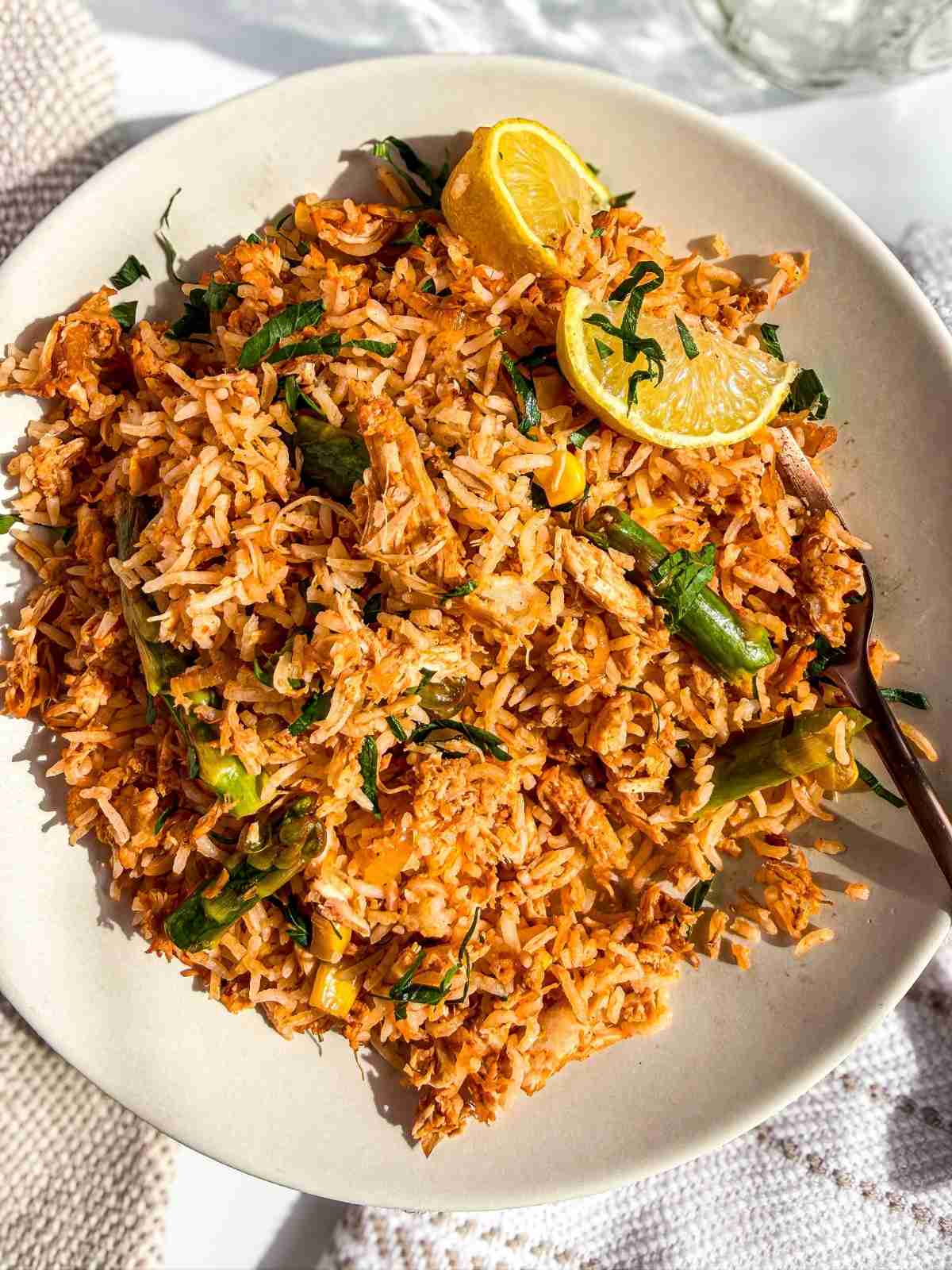 This healthy rotisserie chicken and rice skillet is so simple, and I love to make it with leftover rice, and whatever leftover rotisserie chicken we have in the fridge. WHen i want a lighter version, I make this one with one or two veggies, shallots, tomato paste, seasoning, and spices – it's so simple, and it makes weekday dinner so incredibly easy!